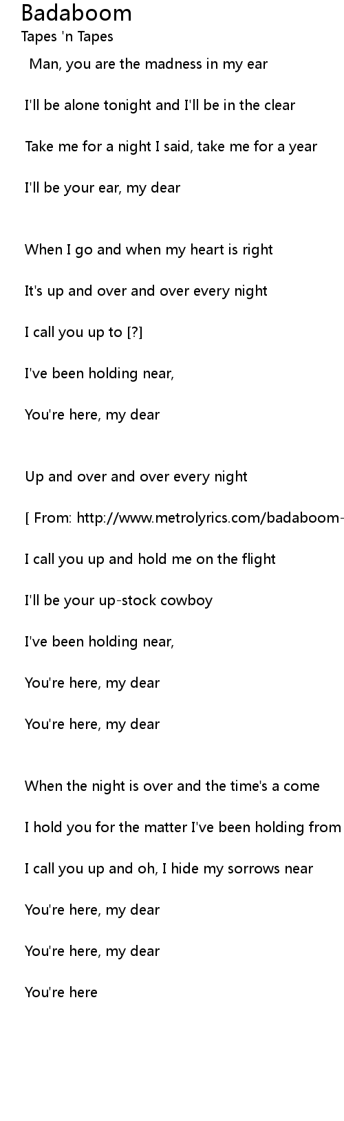 [ From: http://www.metrolyrics.com/badaboom-lyrics-tapes-n-tapes.html ]