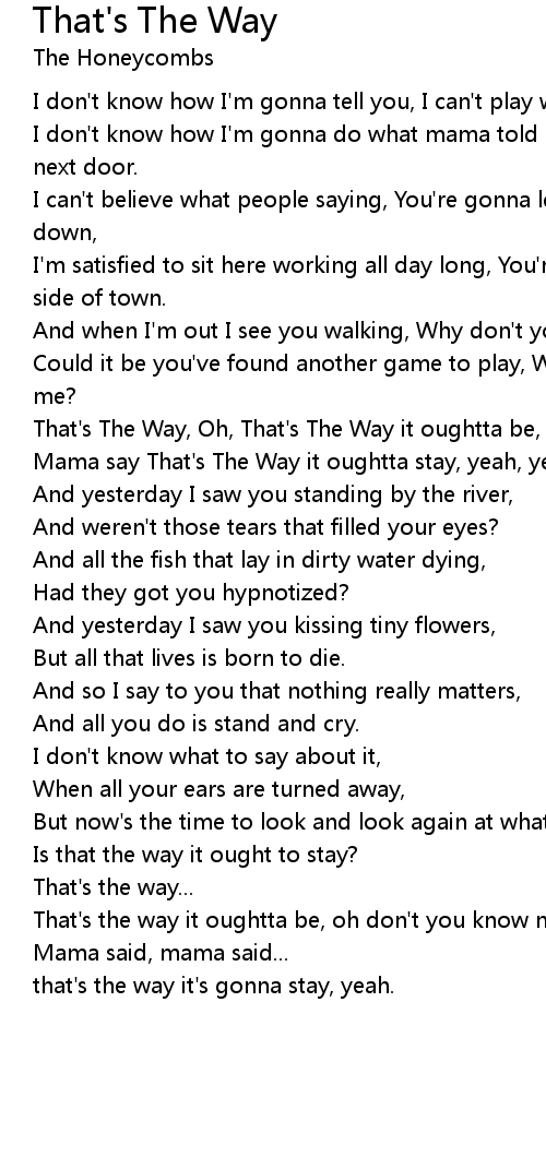 Mama say That's The Way it oughtta stay, yeah, yeah, ooh, ooh |