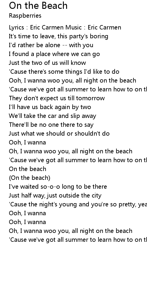 | Oh, I wanna woo you, all night on the beach | |
