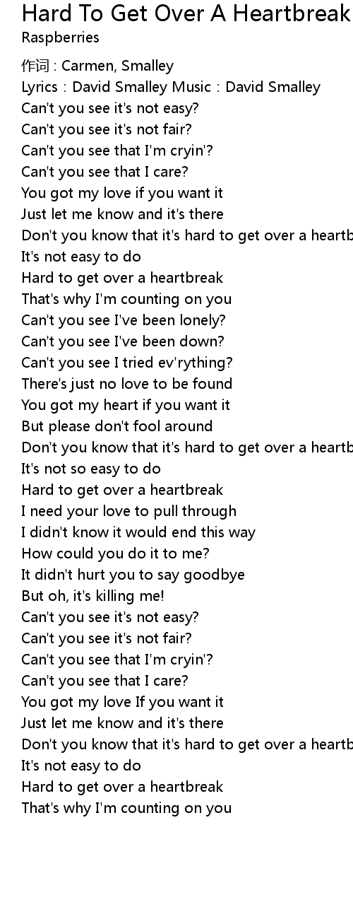 | Don' t you know that it' s hard to get over a heartbreak | |