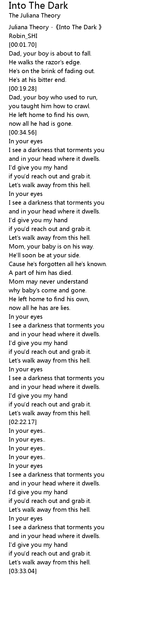 | [00:-2.25] | Juliana Theory -《Into The Dark 》 |