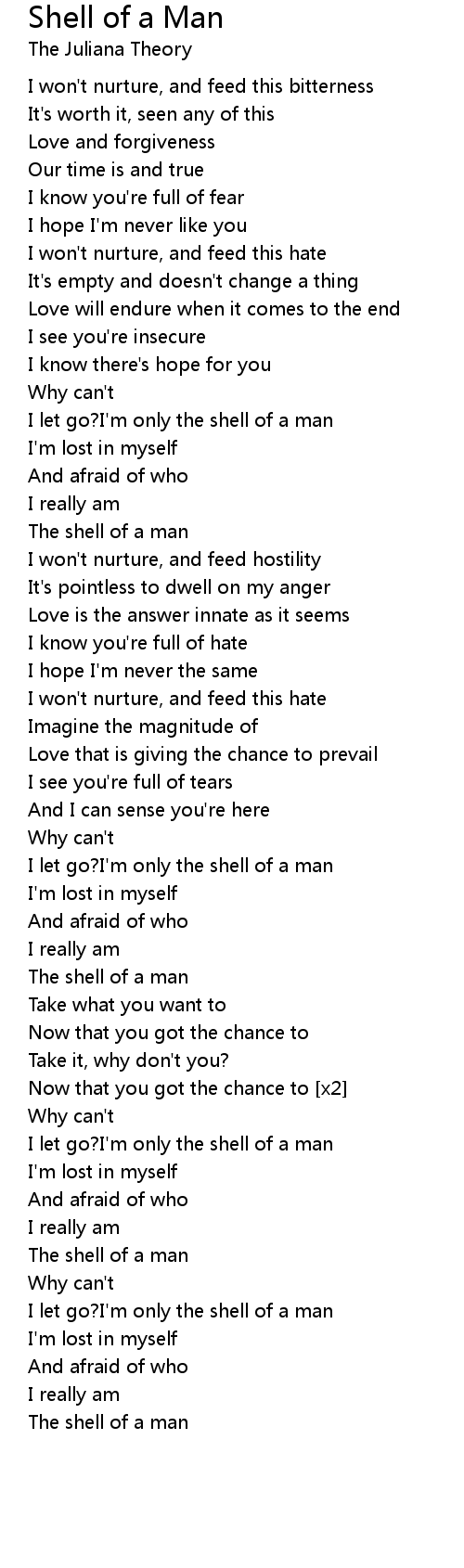 I let go?I'm only the shell of a man |