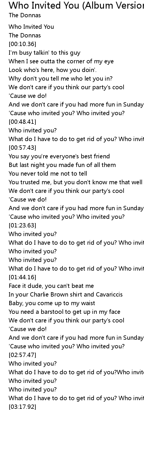 'Cause who invited you? Who invited you? |