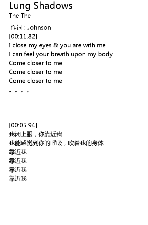 | [03:44.97] | Come closer to me |