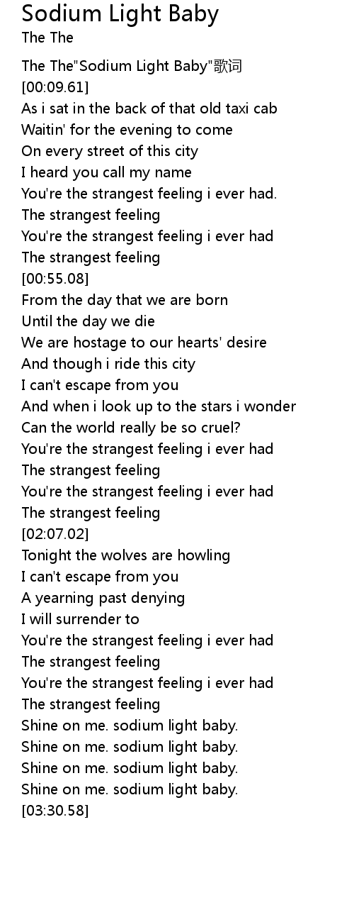 | [00:04.14] | The The" Sodium Light Baby" ge ci |