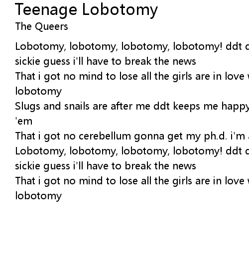 Lobotomy, lobotomy, lobotomy, lobotomy! ddt did a job on me now i am a real sickie guess i'll have to break the news |