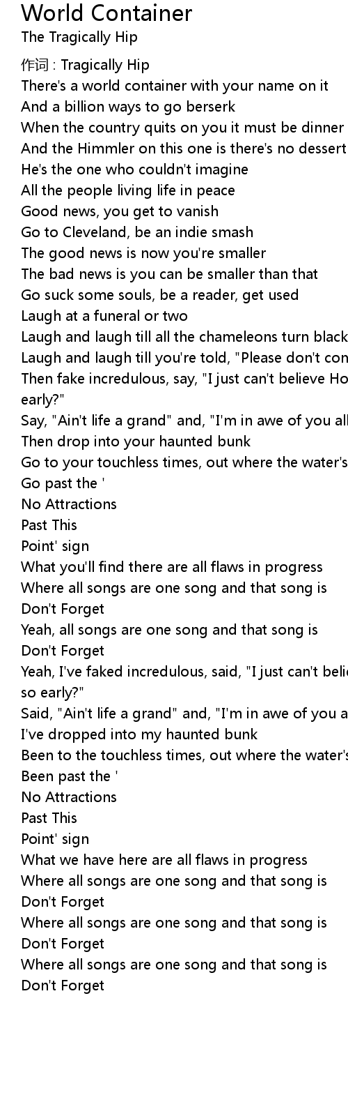 | 作词 : Tragically Hip | |