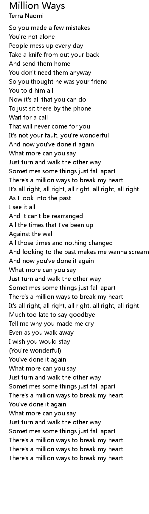 There's a million ways to break my heart |