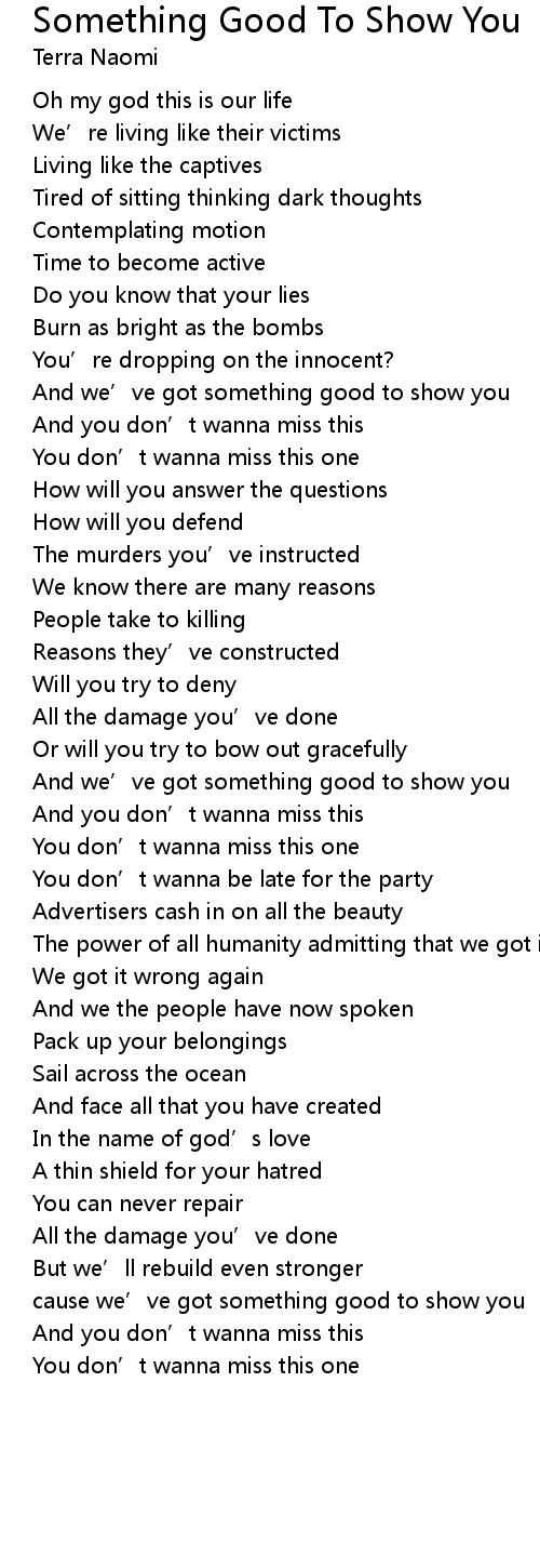 | Song | Something Good To Show You |