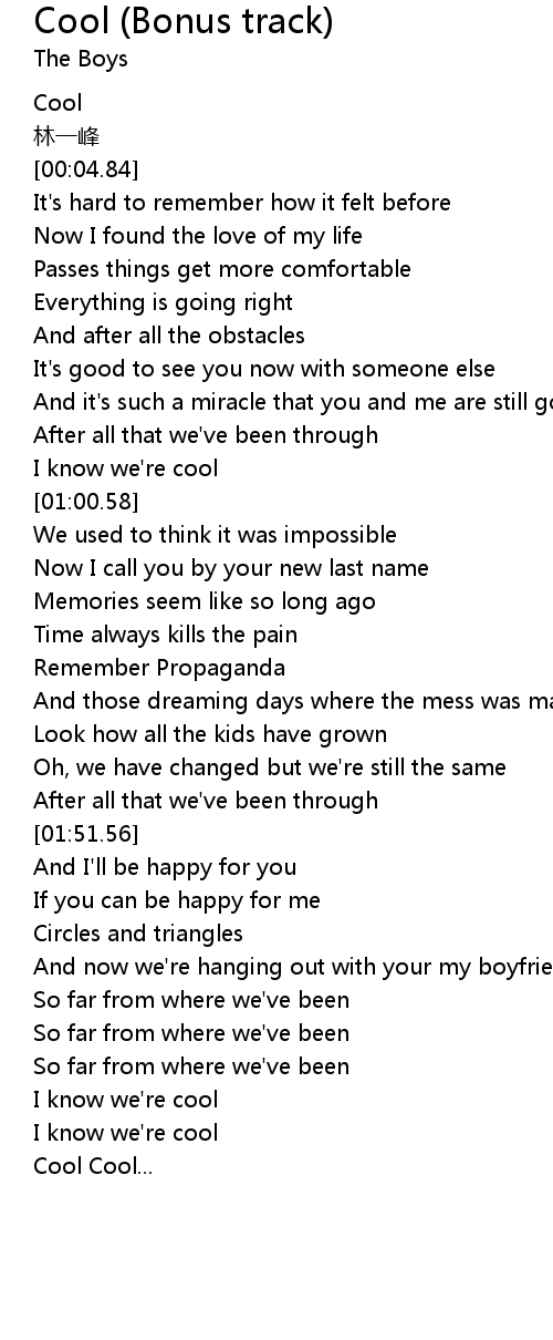 | [00:46.29] | And it's such a miracle that you and me are still good friends |
