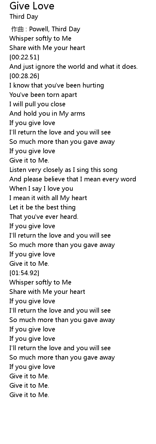 | [00:00.00] | 作曲 : Powell, Third Day |