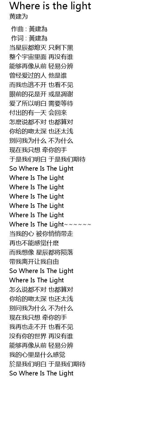 | [02:41.400] | Where Is The Light |