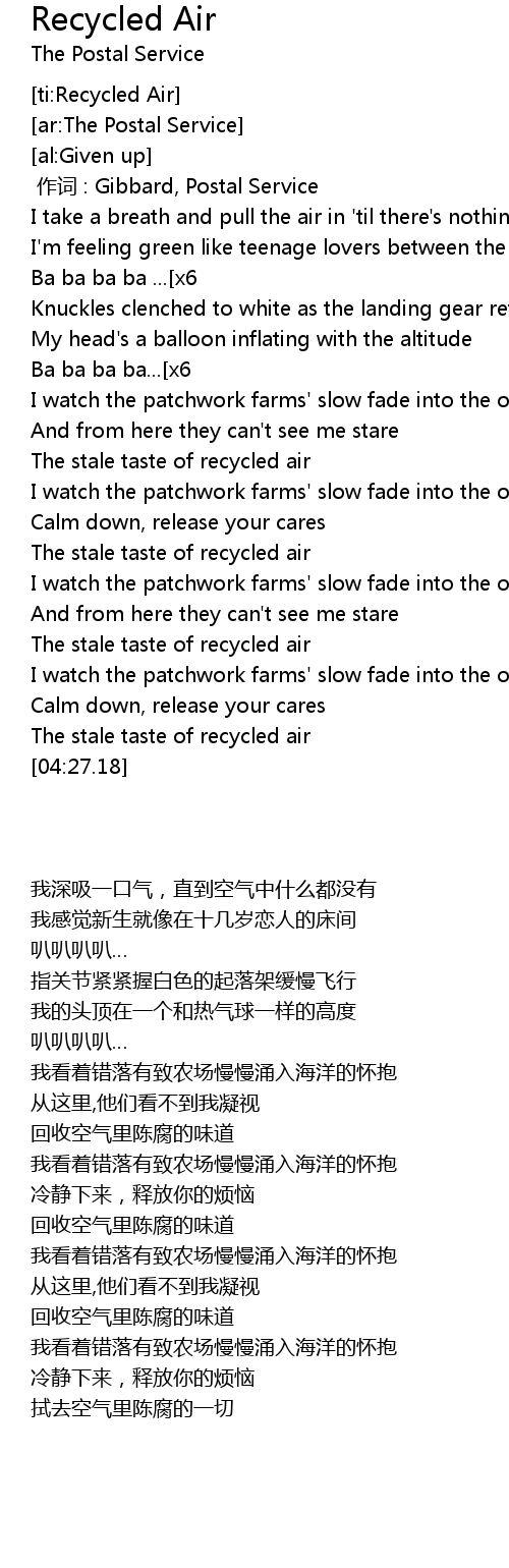 | [00:00.00] | 作词 : Gibbard, Postal Service |