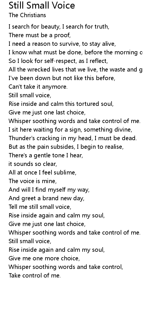 Tell me still small voice, |