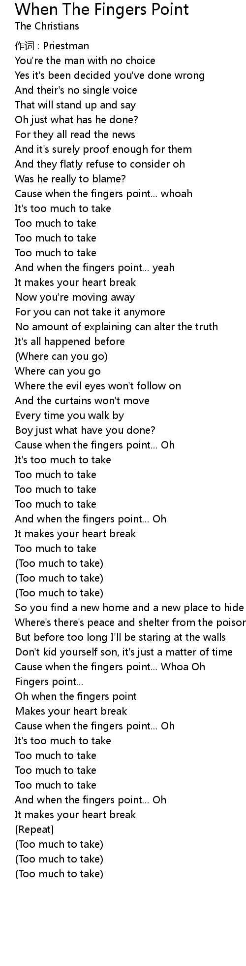 | Cause when the fingers point... Whoa Oh | |
