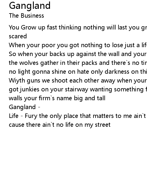 So when your backs up against the wall and your mates can`t hear you call when the wolves gather in their packs and there`s no time for you to look back ain`t no light gonna shine on hate only darkness on this side of town |