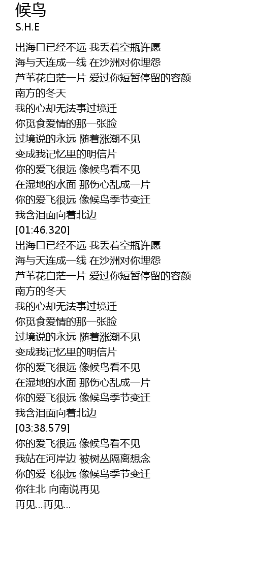| [03:11.760] | 你的爱飞很远 像候鸟看不见 |