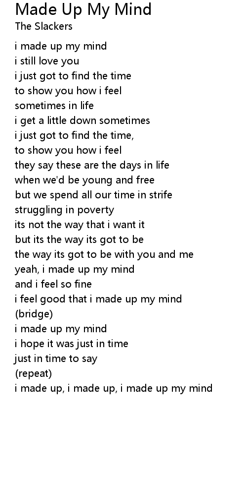 i made up, i made up, i made up my mind |