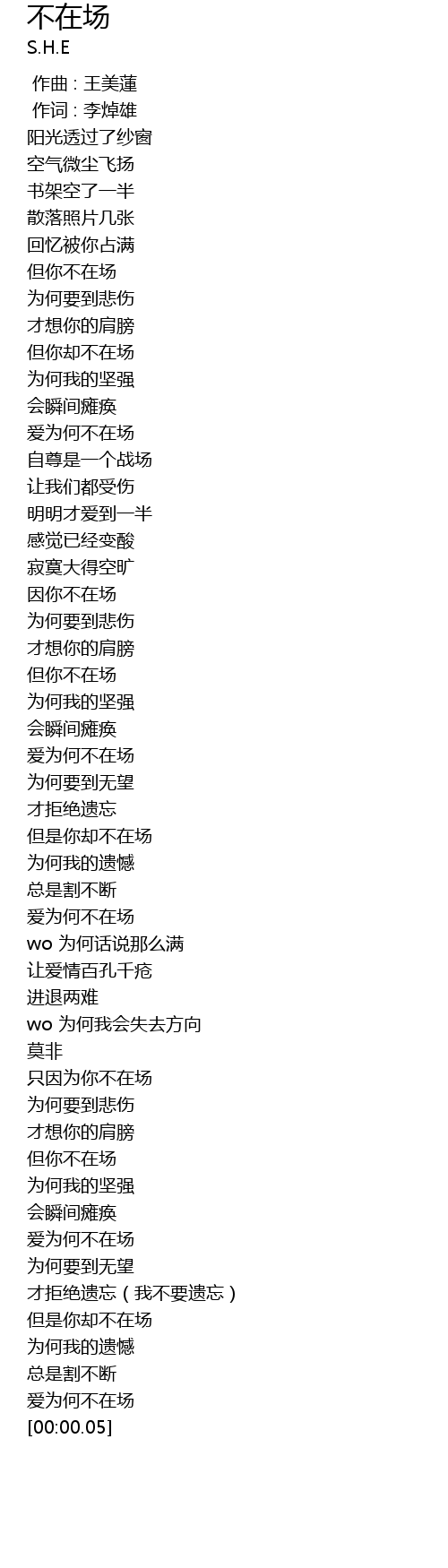 | [02:55.93] | 爱为何不在场 |