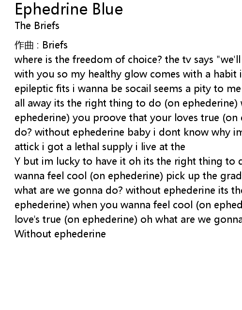 | Y but im lucky to have it oh its the right thing to do (on ephederine) when you wanna feel cool (on ephederine) pick up the grades at school (on ephederine) oh what are we gonna do? without ephederine its the right thing to do (on ephederine) when you wanna feel cool (on ephederine) and proove that youre love's true (on ephederine) oh what are we gonna do? | |