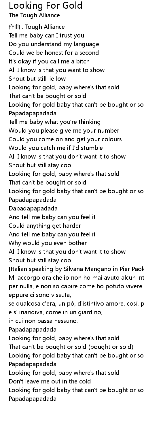 | Looking for gold, baby where's that sold | |