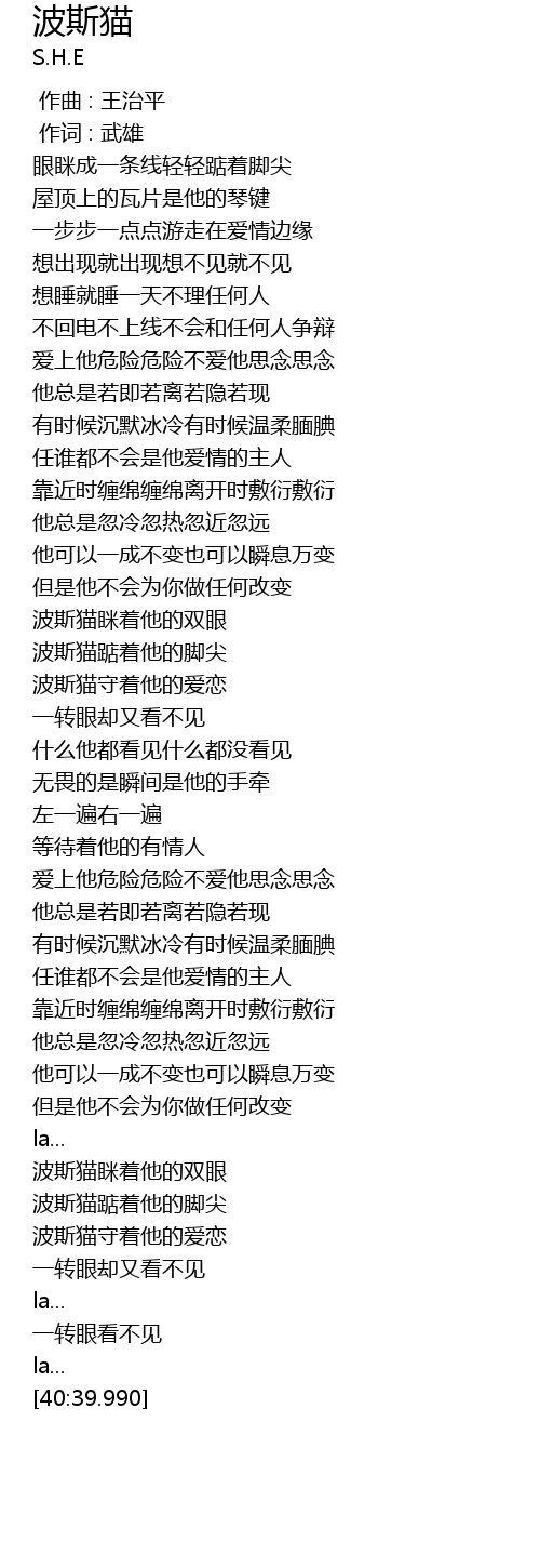 | [03:11.850] | 波斯猫守着他的爱恋 |