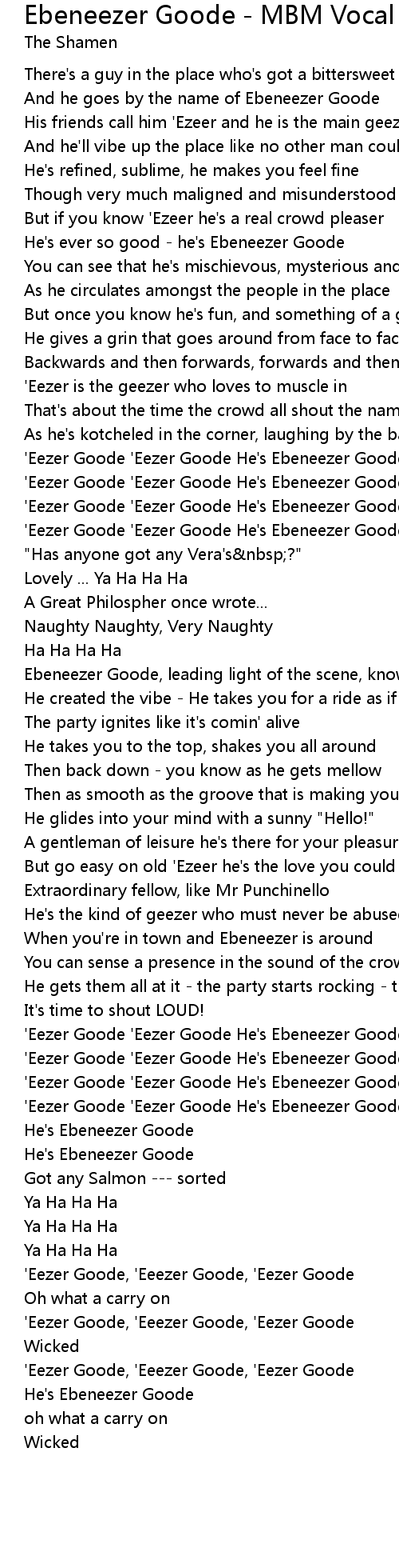 'Eezer Goode 'Eezer Goode He's Ebeneezer Goode |