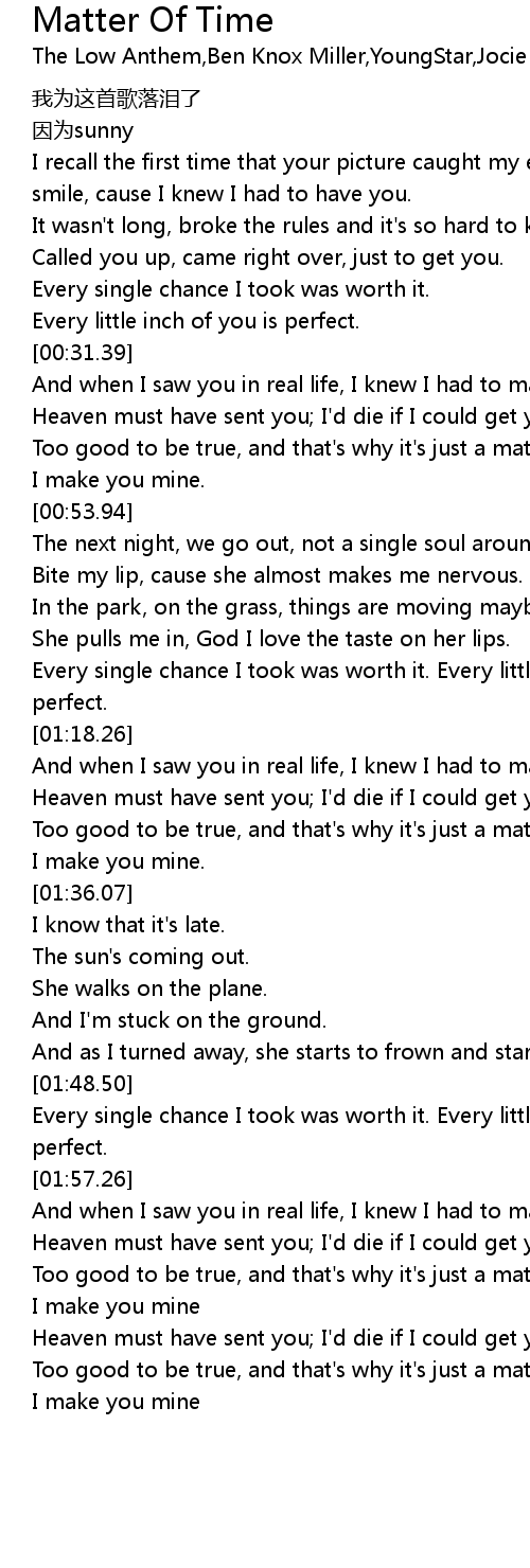 | [00:43.43] | Too good to be true, and that' s why it' s just a matter of time, before I make you mine. |