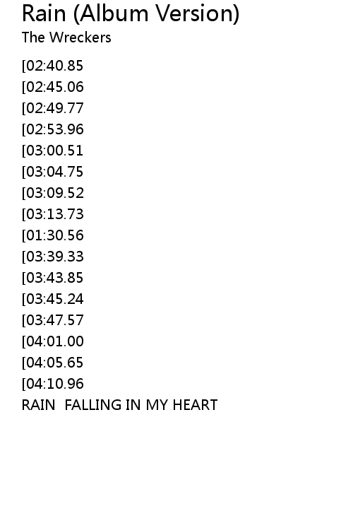 | [04:30.19] | RAIN FALLING IN MY HEART |