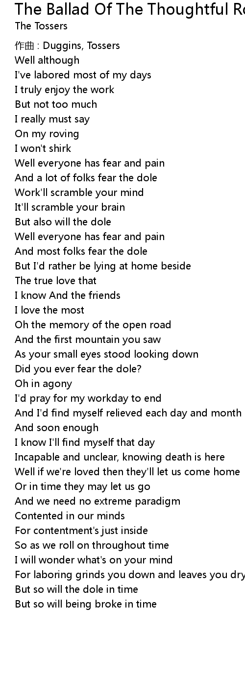 | Song | The Ballad Of The Thoughtful Rover |