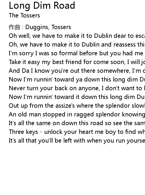 | Now I'm runnin' toward it down this long dim Dublin road | |
