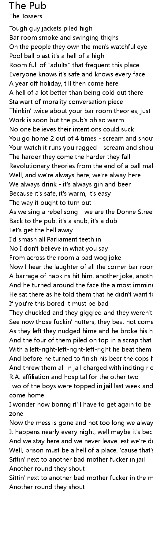 As we sing a rebel song - we are the Donne Street bar room louts |