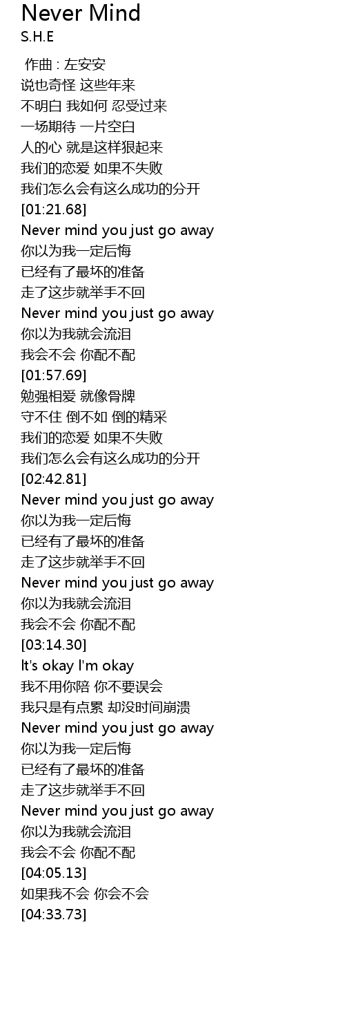 | [03:20.00] | 我不用你陪 你不要误会 |