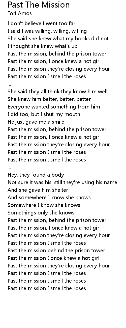 Past the mission I smell the roses |