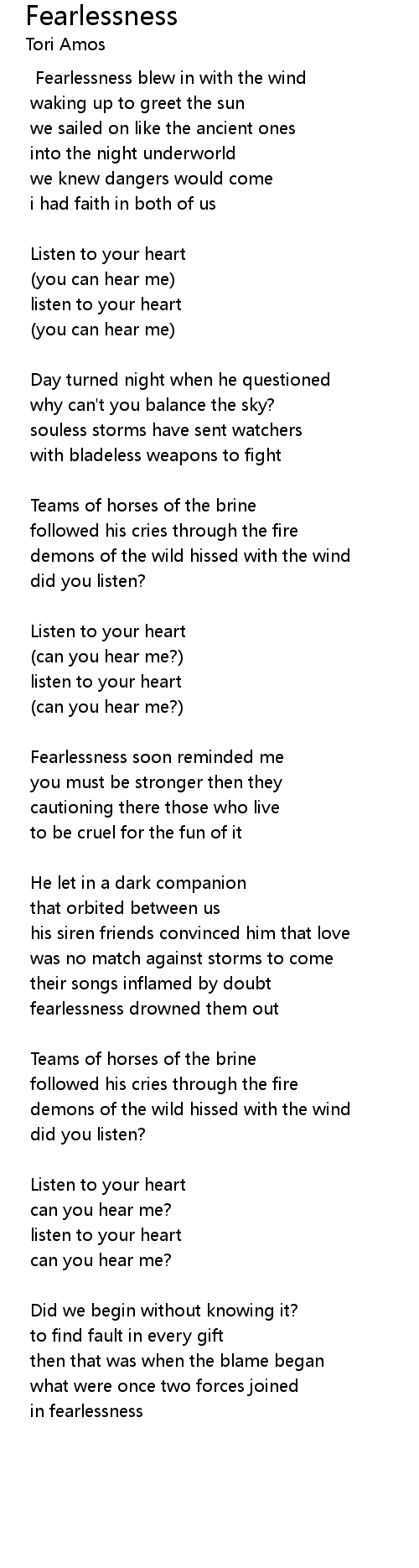 Fearlessness soon reminded me |