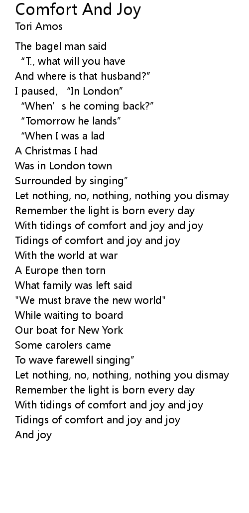 | With tidings of comfort and joy and joy | |