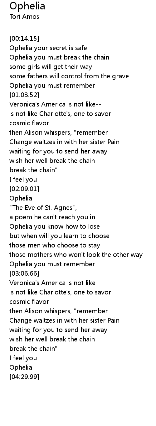 Ophelia you must break the chain |