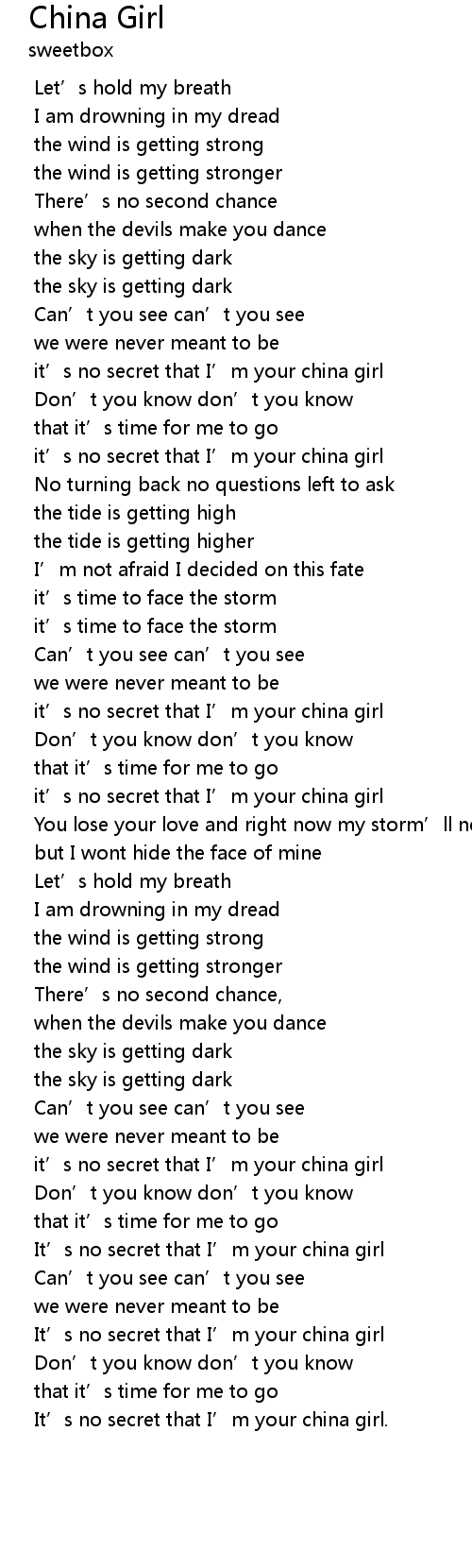 | [00:49.990] | it’s no secret that I’m your china girl |