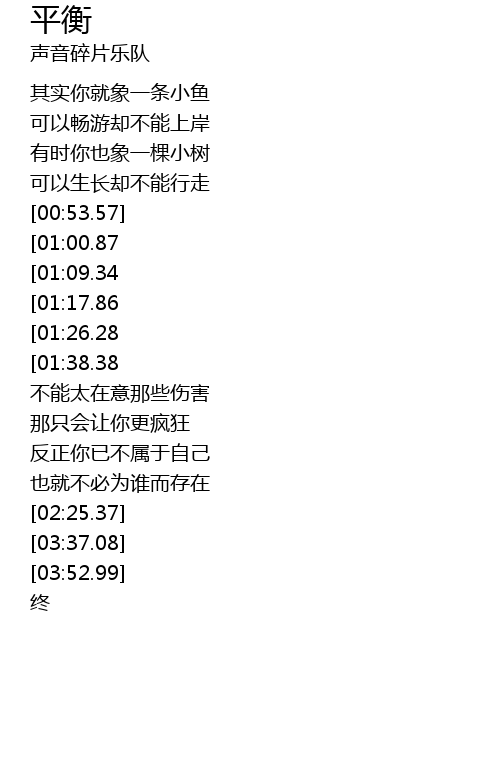 | [02:34.89][01:09.34] | ni ye yao ping heng ni zi ji |