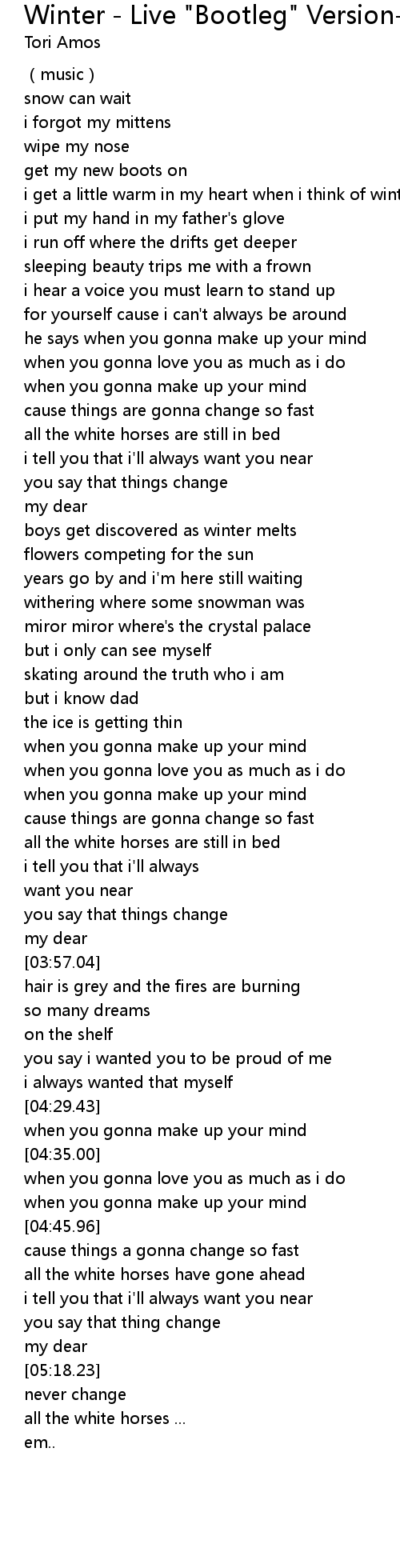 | [03:18.03] | all the white horses are still in bed |