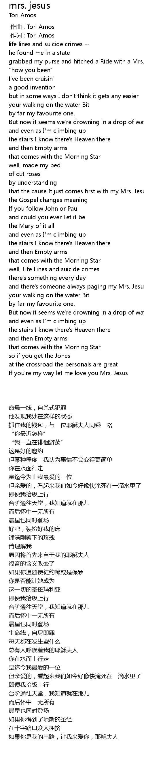 | [02:02.02] | and there' s someone always paging my Mrs. Jesus |