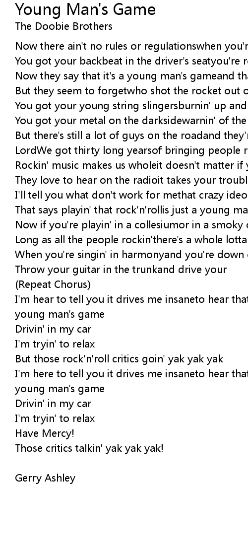 I'm hear to tell you it drives me insaneto hear that rock'n'roll music'sjust a young man's game |