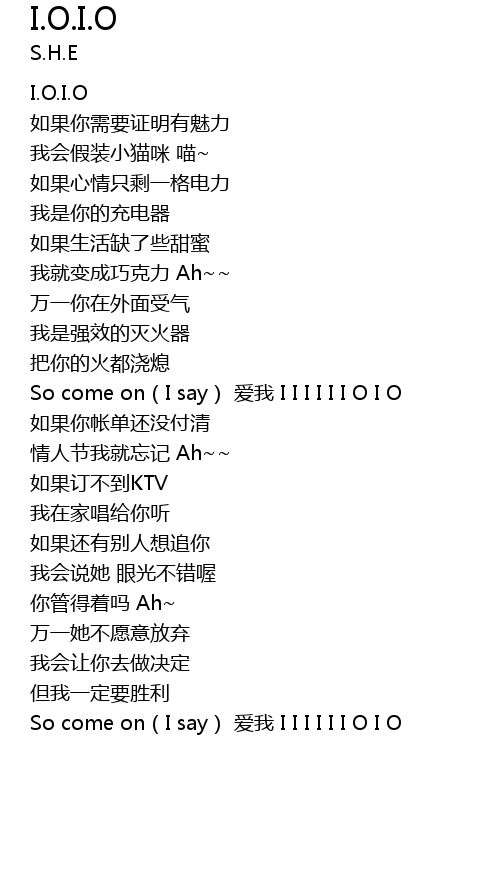 | [01:55.779] | So come on I say ài wǒ I I I I I I O I O |