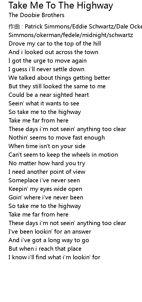 | So take me to the highway | |