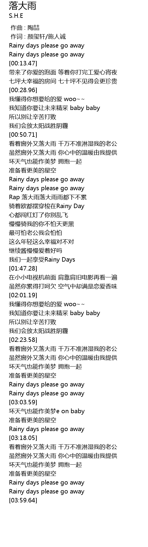 | [01:32.80] | Rap 落大雨落大雨雨都下不累 |