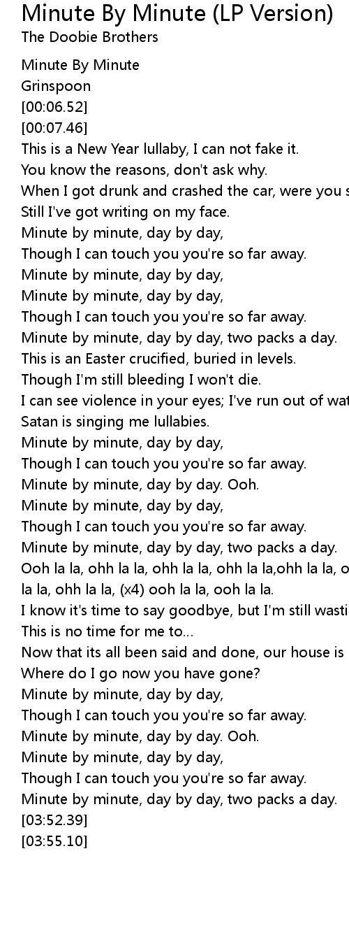 | [03:29.77] | Minute by minute, day by day. Ooh. |