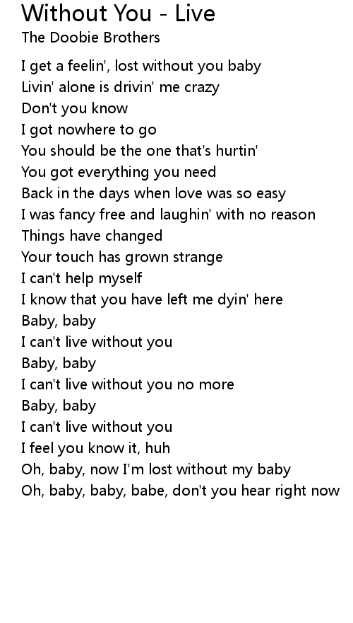 I get a feelin', lost without you baby |