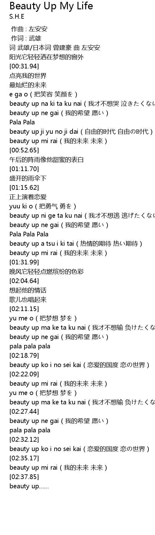 | [02:36.05] | beauty up mi rai(我的未来 未来) |