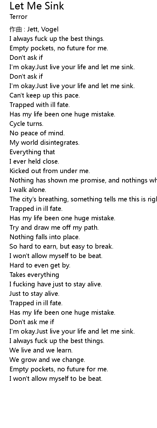| I' m okay. Just live your life and let me sink. | |