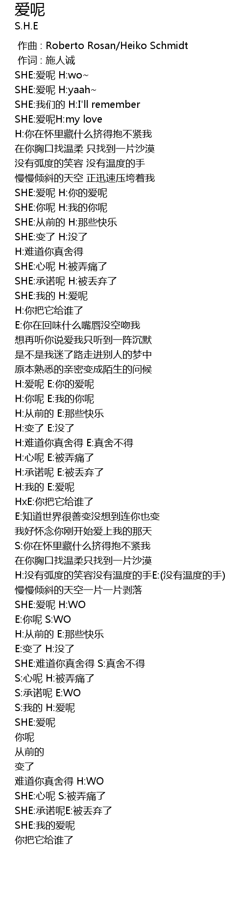 | [00:38.359] | SHE:爱呢 H:你的爱呢 |